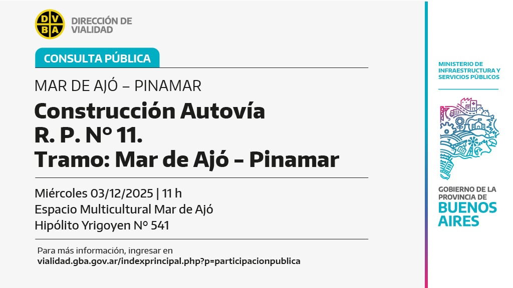 Convocatoria Consulta Pública: proyecto construcción Autovía R. P. N° 11, tramo Mar de Ajó – Pinamar
