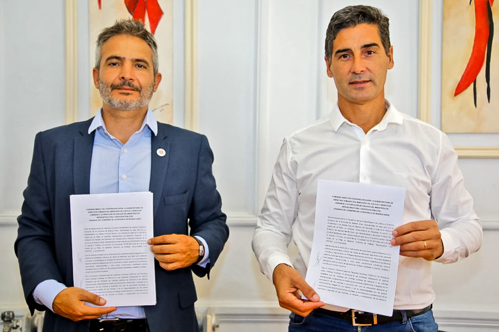 El administrador de la Dirección de Vialidad, Hernán Y Zurieta, y el Subsecretario de Derechos Humanos de la provincia de Buenos Aires, Matías Moreno, firmaron un convenio de cooperación para la realización de una política pública que –por primera vez- facilitará la visibilización de los Sitios de Memoria, a través de la implementación de un sistema de señalética vial específico.