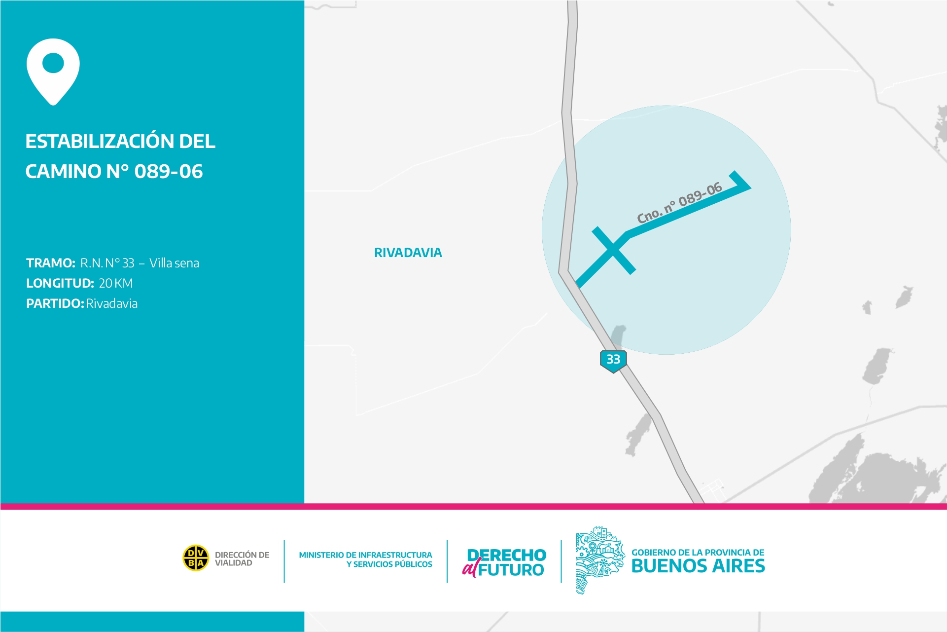 Las tareas estipulan el mejoramiento y estabilizado del Camino Nº 089-06, en el tramo comprendido entre Ruta Nacional Nº33 y Villa Sena.