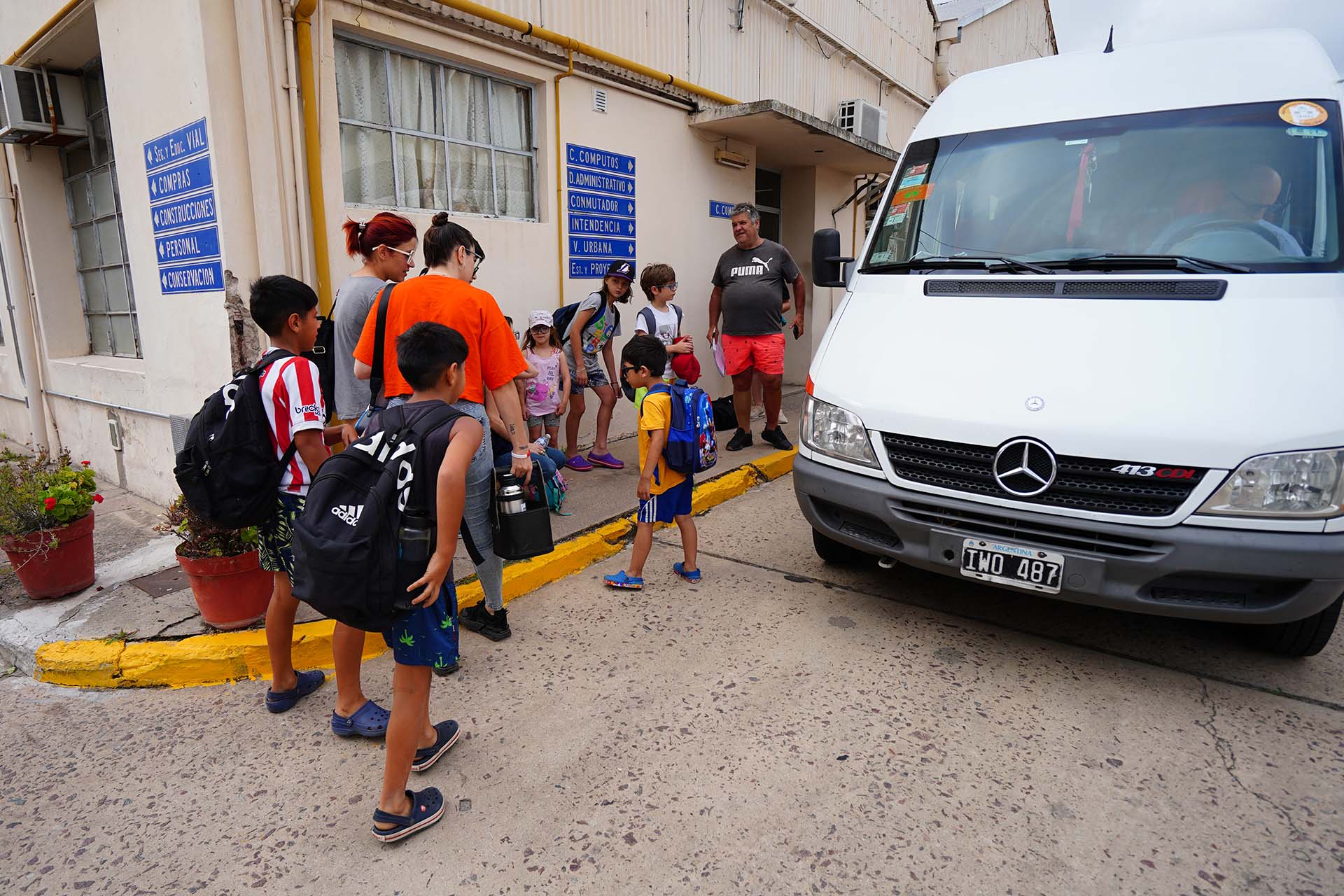La jornada inicia a las 9hs, cuando una combi recoge a los chicos por la Dirección de Vialidad, con destino al camping de Punta Lara.
