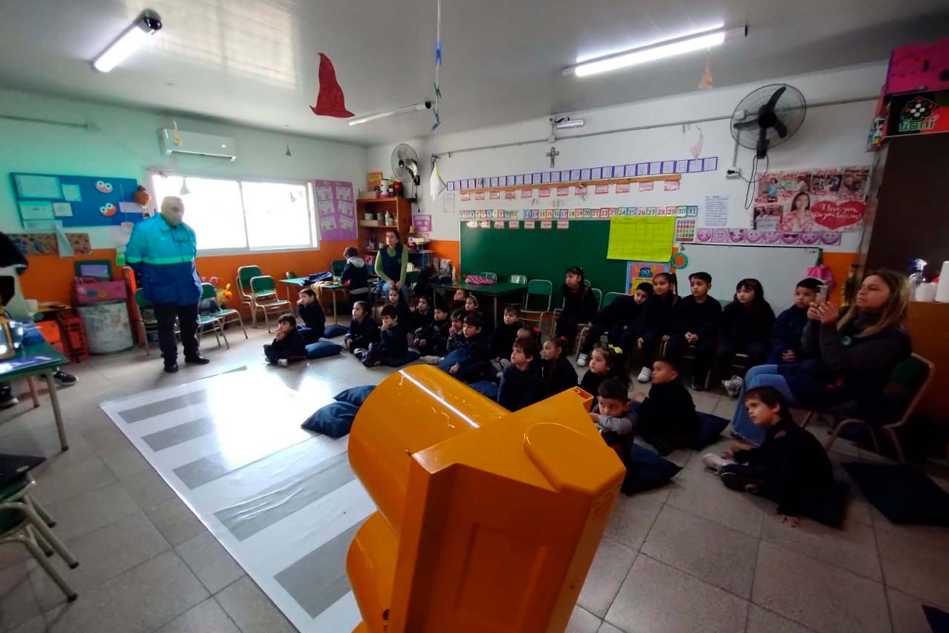En el encuentro, llevado a cabo con 30 alumnos de turno mañana y 40 de turno tarde, se trabajaron contenidos tales como circulación peatonal, como pasajeros, el uso de elementos de seguridad y la normativa vial.