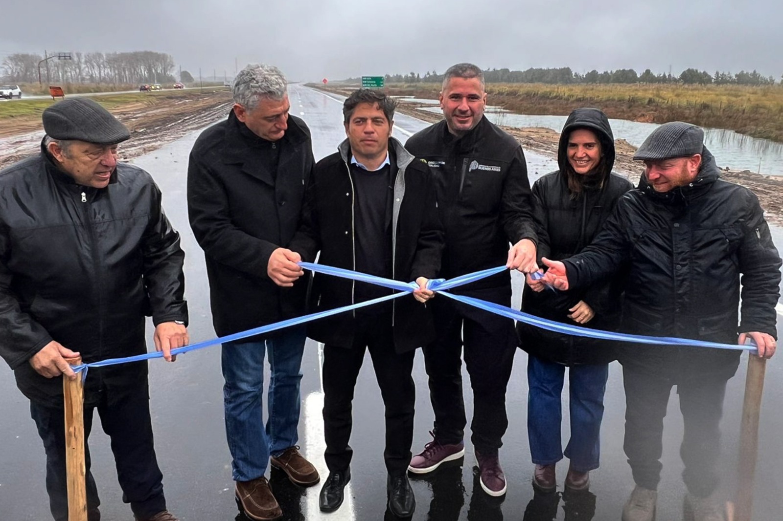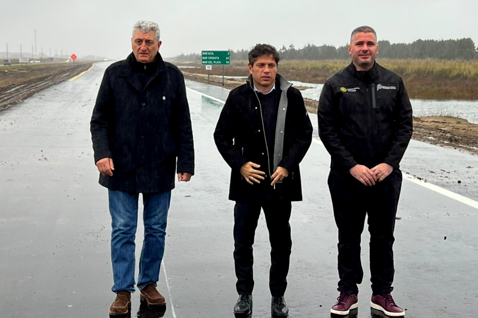 El gobernador de la Provincia de Buenos Aires, Axel Kicillof; el administrador de Vialidad, Roberto Caggiano y el intendente de Villa Gesell, Gustavo Barrera, participaron de la recorrida inagural de un nuevo tramo de la Autovía Nº11, entre los accesos de Mar de las Pampas y Mar Azul.