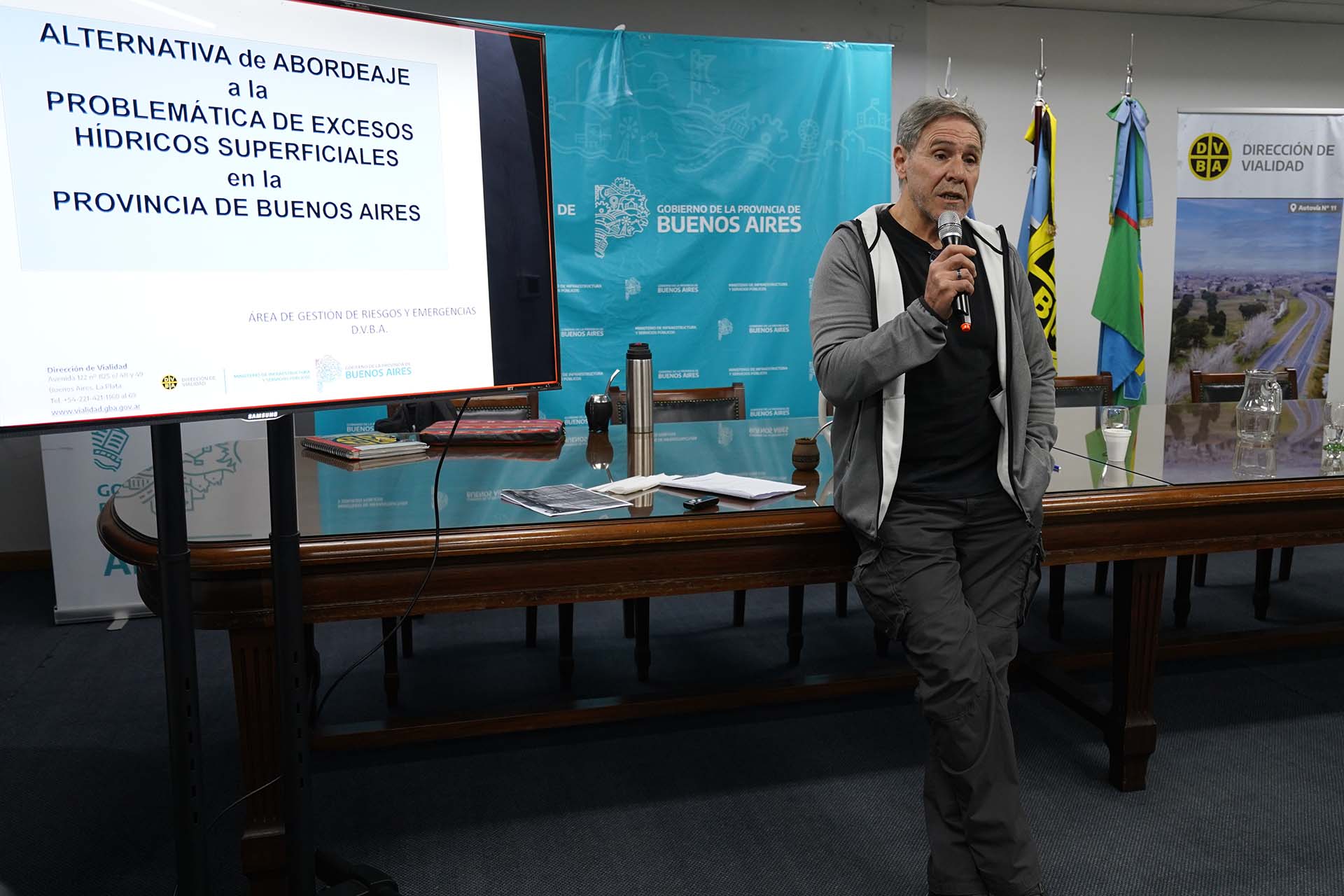Por otro lado, la jornada cerró con la presentación del trabajo “Alternativa de abordaje a la problemática de excesos hídricos superficiales en la Provincia de Buenos Aires”, a cargo de Hugo Gervacio.