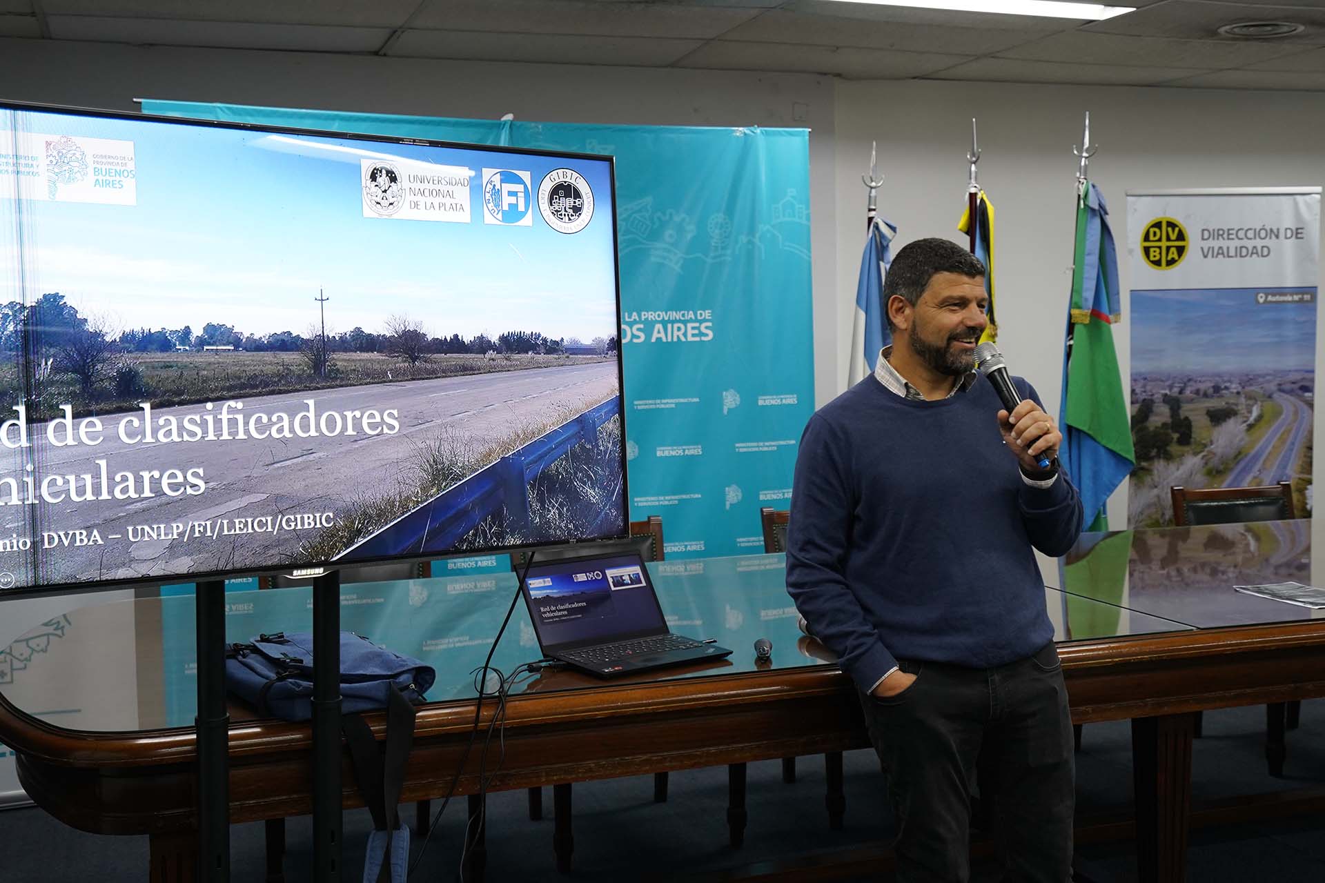 La jornada comenzó con la disertación de Pablo García, quien explicó el convenio existente entre la UNLP LEICI y la Dirección de Vialidad de la provincia de Buenos Aires.